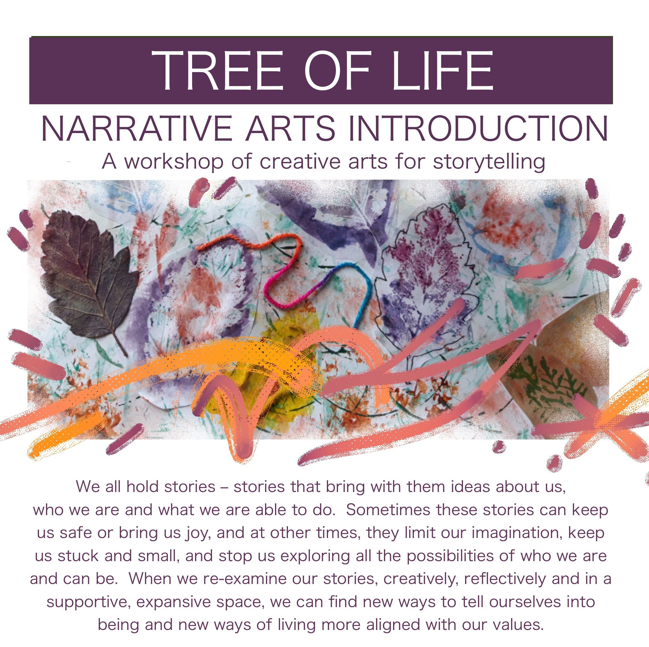 In this 2-hour introductory workshop, experienced facilitator and founder of Journey to Reconnect Clare Gibbons, will introduce you to Narrative Arts. Using the motif of a tree, we will explore the symbols of roots, trunk, branches and leaves, and how representing these through painting, words, collage and objects can bring our stories to life !